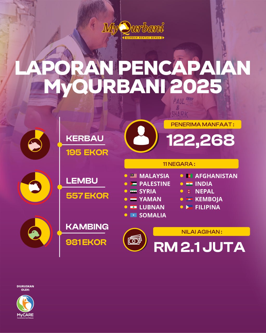 Harap anda semua terus menyokong projek-projek kemanusiaan MyCARE. Jumpa lagi insya Allah di MyQurbani 2026.